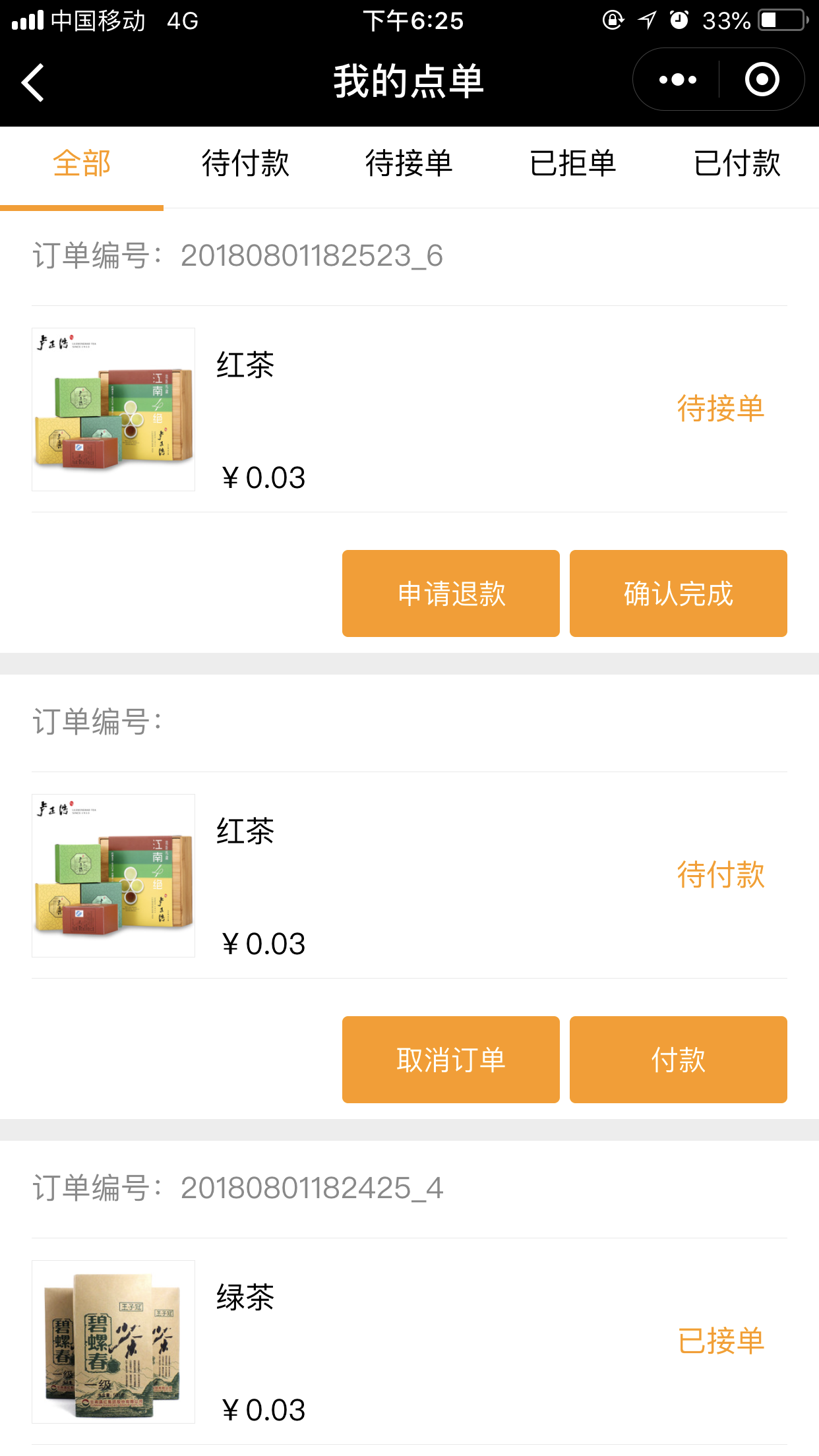 5.在“会员中心”中—“手机点单”中可以看到所有的订单详情,如图所示: